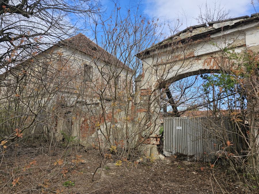 A főút felőli fronton a kastély épülete áll, előterét beborította a növényzet. Az udvari oldali kapu már erősen dől: itt még valami látszik az egykori építészetből. Az udvart balról és jobbról az északi és déli marhaistálló, hátulról gazdasági épület határolja. Az istállókban jelenleg baromfitartás folyik.